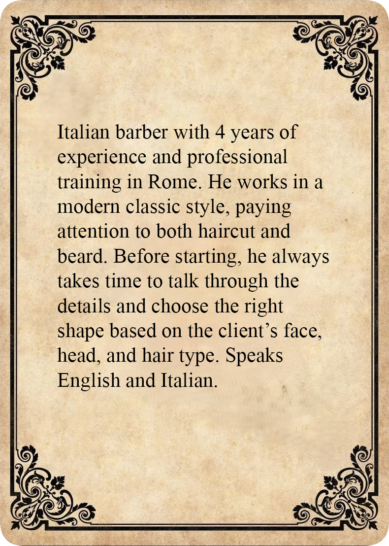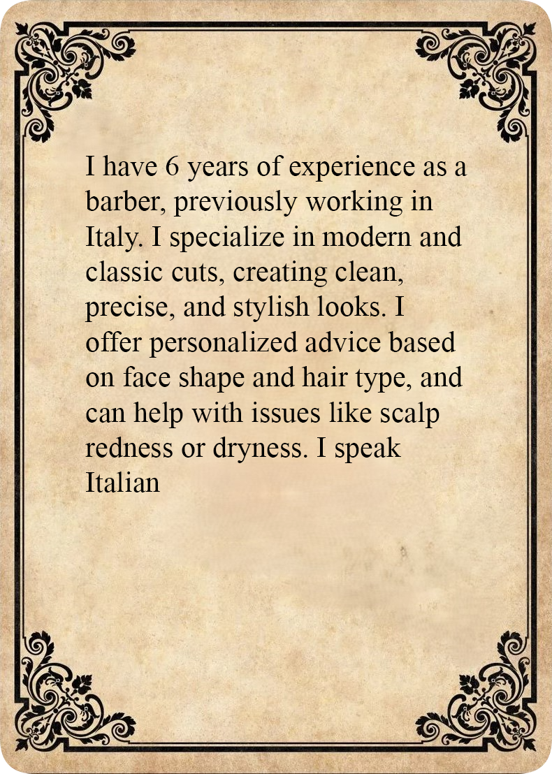 "At La Barberia Italiana, I don’t just cut hair — I craft confidence."